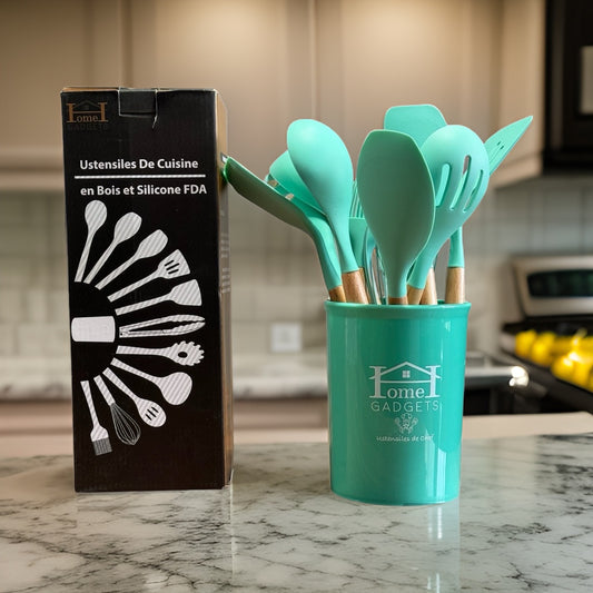 12 pièces d'ustensiles de cuisine silicone et bois Certifiés